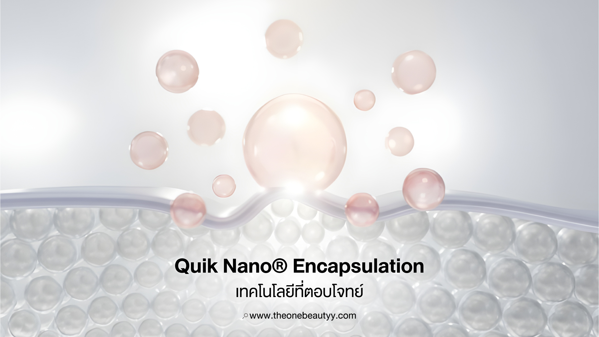 ในโลกของสกินแคร์ที่เต็มไปด้วยนวัตกรรมใหม่ๆ การค้นพบส่วนผสมที่ยอดเยี่ยมเป็นเพียงแค่จุดเริ่มต้น แต่ความท้าทายที่แท้จริงคือ "การนำพาส่วนผสมเหล่านั้นให้ซึมลึกสู่ผิวได้อย่างมีประสิทธิภาพ" วันนี้เราจะพาทุกท่านไปรู้จักกับ Quik Nano® Encapsulation เทคโนโลยีสุดล้ำที่เปรียบเสมือนยานพาหนะขนาดจิ๋ว ที่จะมาปฏิวัติการดูแลผิวและเส้นผมอย่างที่ไม่เคยมีมาก่อน