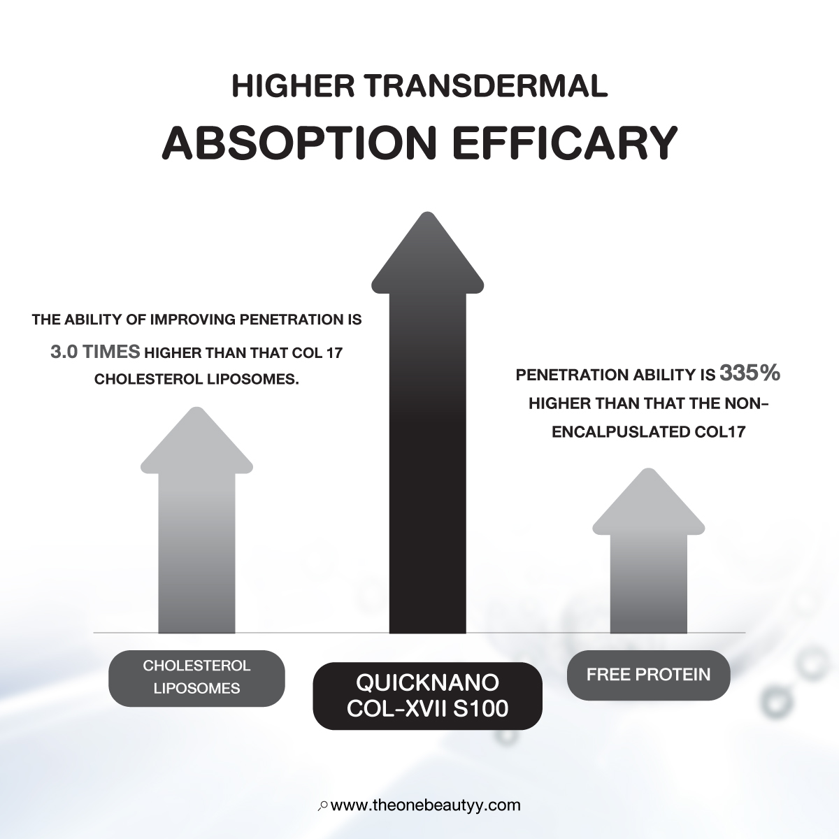 เมื่อนำ Collagen Type XVII มาห่อหุ้มด้วยเทคโนโลยีนี้ เกิดเป็น QuikNano® Col-XVII S100 แอคทีฟที่ทรงพลังซึ่งได้รับการจดสิทธิบัตรและนำเสนอในงานวิจัยระดับนานาชาติ (เช่น IFSCC) ผลลัพธ์ที่ได้นั้นน่าทึ่งมาก