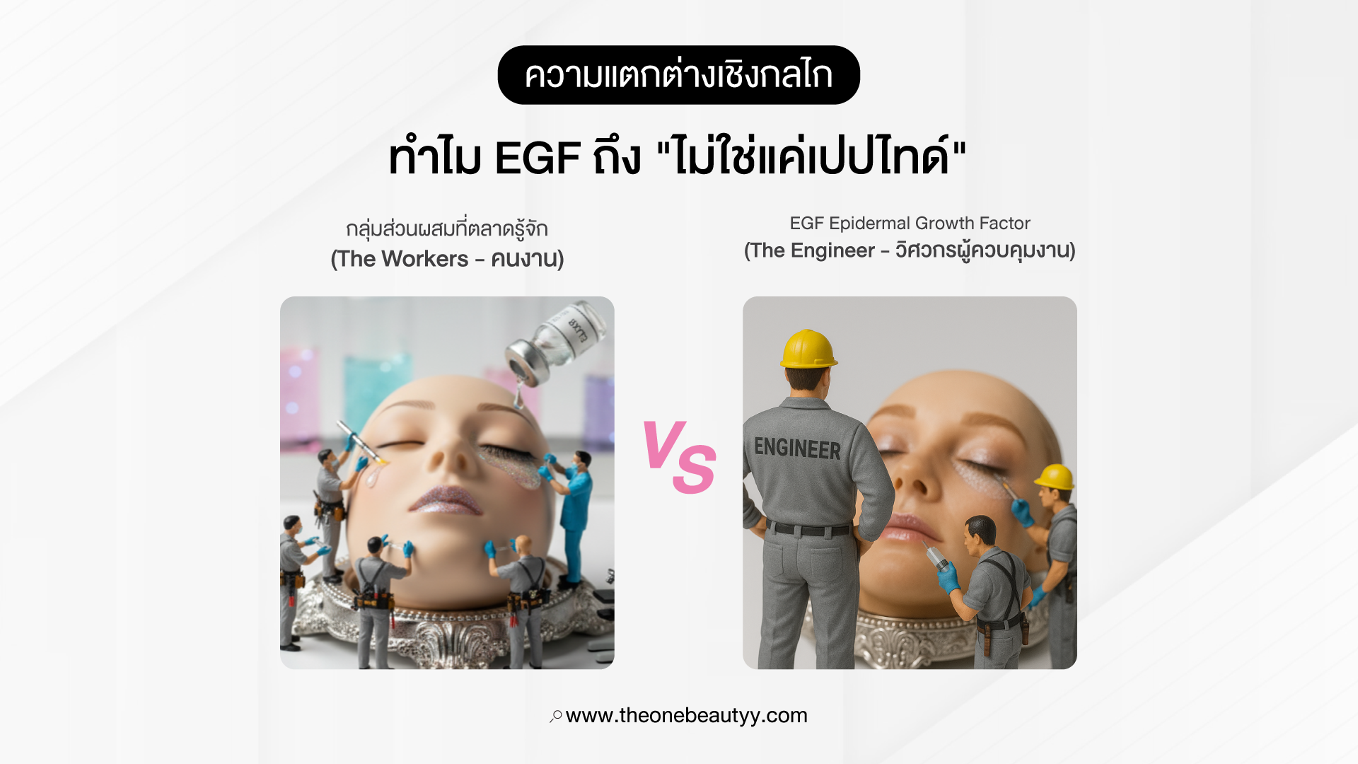 EGF: สั่งการ (Cell Signaling) ให้เซลล์แบ่งตัว สร้างคอลลาเจน และซ่อมแซมแผลเอง