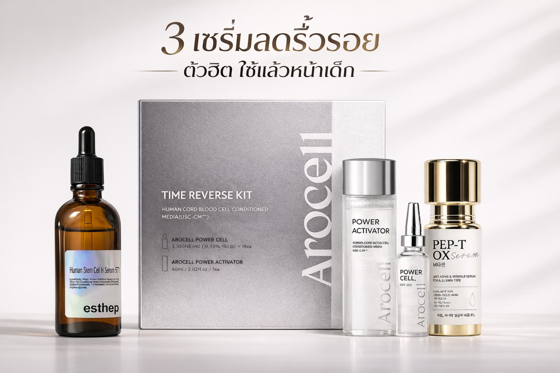 การมองหาเซรั่มลดริ้วรอยที่เป็นตัวฮิตและใช้แล้วเห็นผลจริงนั้นไม่ใช่เรื่องยากหากเรารู้จักส่วนผสมที่สำคัญ ไม่ว่าจะเป็น Pep Tox ที่เน้นการยกกระชับด้วยเปปไทด์ Arocell ที่ช่วยย้อนเวลาผิวด้วยความชุ่มชื้นเข้มข้น หรือ Esthepro ที่ใช้พลังสเต็มเซลล์ขั้นสูงเพื่อการฟื้นฟูระดับเซลล์ ทั้งหมดนี้คือทางเลือกที่ยอดเยี่ยมในการเริ่มต้นดูแลผิวของคุณให้ดูอ่อนเยาว์และสุขภาพดี การลงทุนกับผิวตั้งแต่วันนี้คือการลงทุนที่คุ้มค่าที่สุดสำหรับอนาคตครับ
