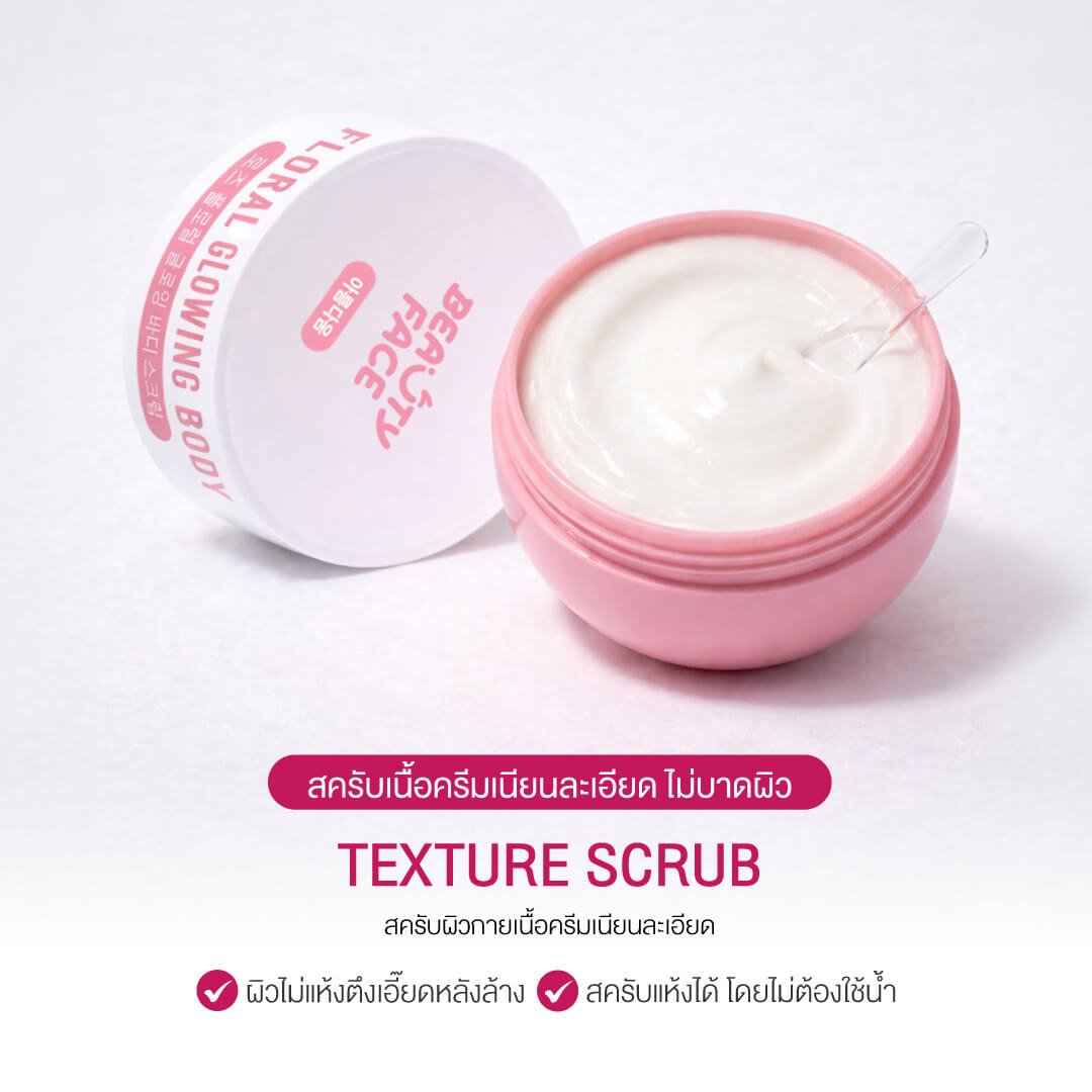 สครับผิวกายเนื้อครีมละเอียด อ่อนโยนต่อผิว ช่วยขจัดเซลล์ผิวเก่า พร้อมเติมความชุ่มชื้นให้ผิวดูสุขภาพดี